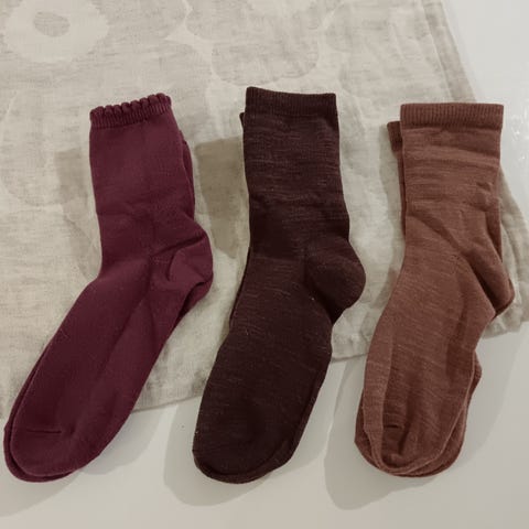 Siistikuntoisia käytettyjä, oikeanpuoleisin pari merinoa. 1€ koko setti. Ei tori-diiliä eikä vintediä käytössä. Katsothan myös muut myynnissä olevat vaatteeni.