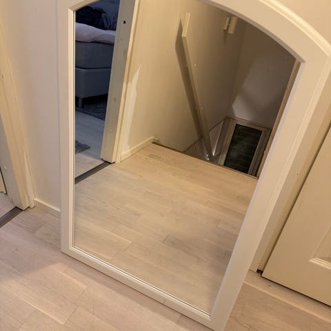 peili, jossa koristeellinen kehys. Peilin koko n. 130cm * 90cm ja väri eivät ole tiedossa. Soveltuu sisustuskäyttöön.