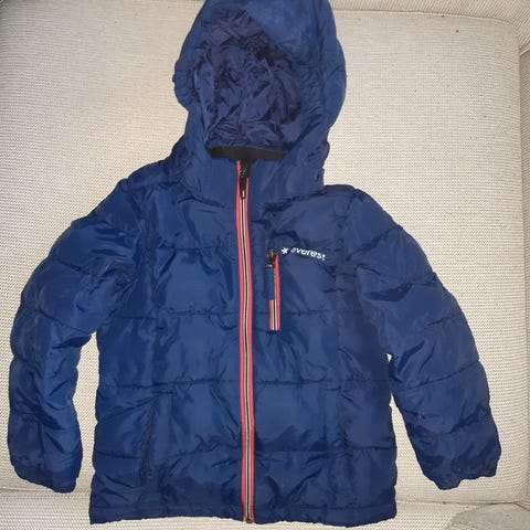 Vähän käytetty, erittäin hyväkuntoinen lasten toppatakki. Väreinä vaalea turkoosi ja tumman sininen. Vedenpitävä. Kiristettävä helma ja irroitettava huppu. Heijastimet edessä, takana ja hihoissa.