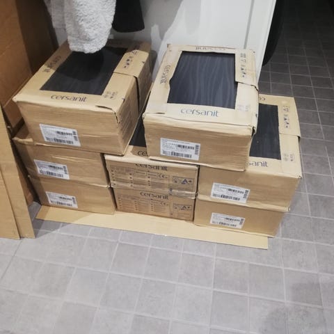 Vihertävä seinälaatta. Kolme pakettia. Uusi ( yksi paketti vain avattu kuvaa varten).