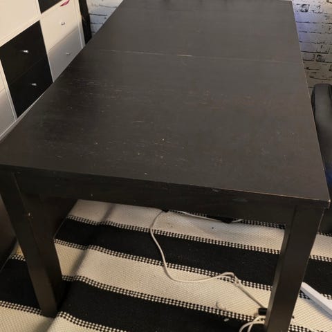 Erittäin hyvässä kunnossa oleva valkoinen Ikean Bjursta jatkettava ruokapöytä / keittiön pöytä. Myydään, koska tarvimme pienemmän pöydän.