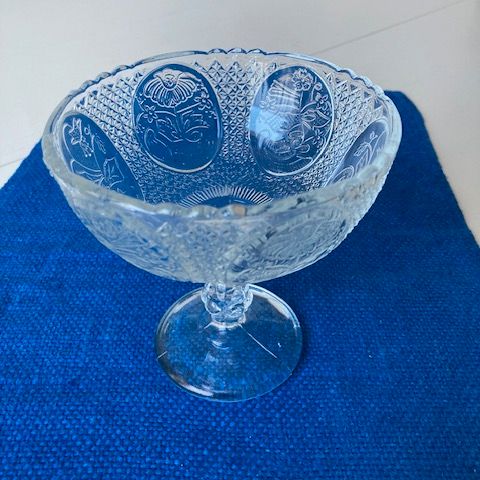 Amber Olympia lasimalja. Malja on jalallinen ja sen koristeena on kukkakuvioita.