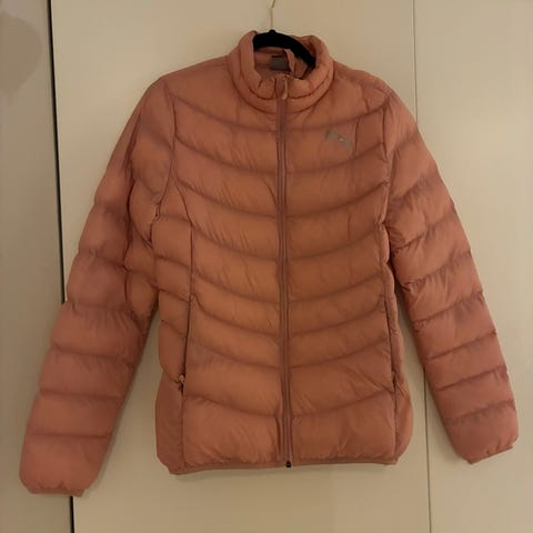 Puman kevyttoppatakki. Vetoketju vaihdettu heijastavaan. Taskut vetoketjulla. Ohut. Säilytyksessä mennyt vähän ryppyyn. Naisten malli, normaali mitoitus, ei ole ainakaan nafti.