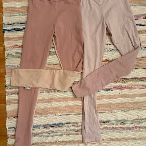 Vaaleanpunavalkoisissa polvessa paikattu reikä, saa ilmaiseksi, ei huomaa tosin käytössä ollenkaan. Liilavaaleanpunaiset ehjät. Ei tahroja. Myyn settinä.