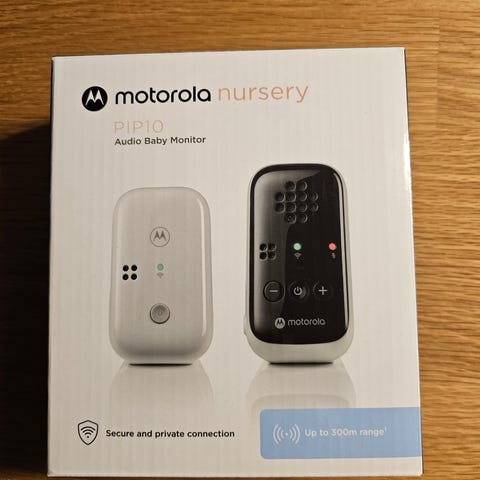 Motorola PIP10 itkuhälytin. Pakkaus avattu ja laitteen toimivuus testattu mutta muuten täysin käyttämätön. Vanhemman yksikkö toimii pattereilla ja vauvan yksikkö verkkovirrassa. Haku tai tarvittaessa kulkeutuu Rauman keskustaan, ei lähetystä.
