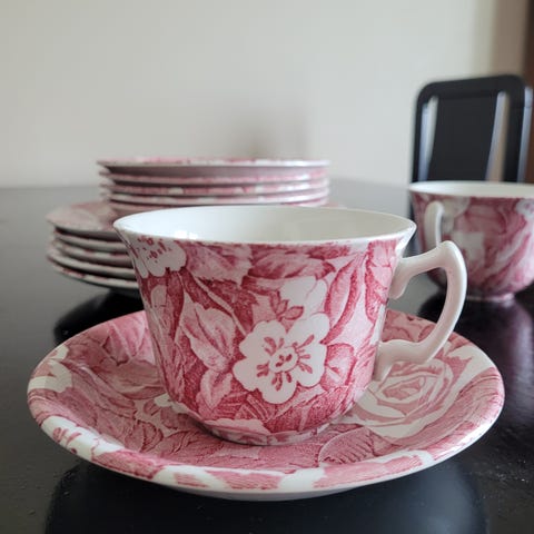 Myydään siisti ja kaunis posliini teeastiasto. Mukaan kuuluu teekannu, kermakannu, sokerikko, 6kpl kuppeja, 6 pientä lautasta, 6 isoa lautasta.