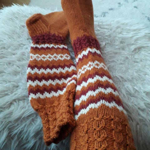 Villasukat käsin kud. Lanka 7-veljestä, väri luumun punainen, koko 38-39(24cm)