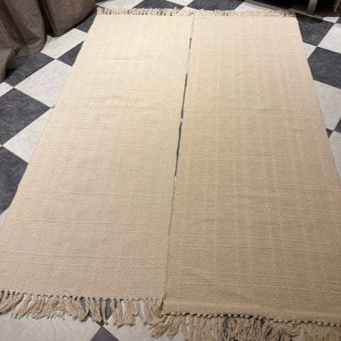 Myydään kaksi hyväkuntoista mattoa. Väri vaaleanruskea /beige. Yhteishinta 25 €.