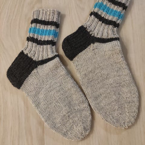 Villasukat, kädinkud. lanka 7-veljestä, väri harmaa ja musta, koko 48-39 (25cm) varsi 35cm