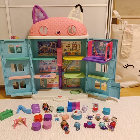 Gabby nukketalo ilman figuureja, kaikki kynnossa ja toimii.