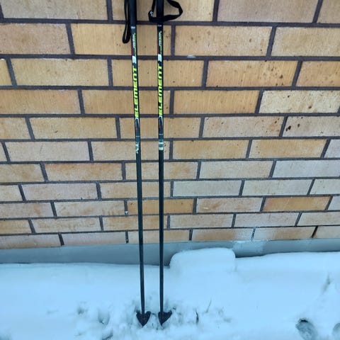 Myydään paljon hiihdetyt 140cm sukset ja 105cm sauvat, NNN side.