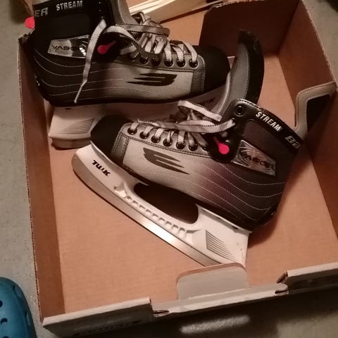 Hyvässä kunnossa, toki pientä käytönjälkeä, olevat hokkarit. Koko 8, sisämitta noin 26,5cm. Viimeterotusten jälkeen olisko yhesti ollut käytössä.