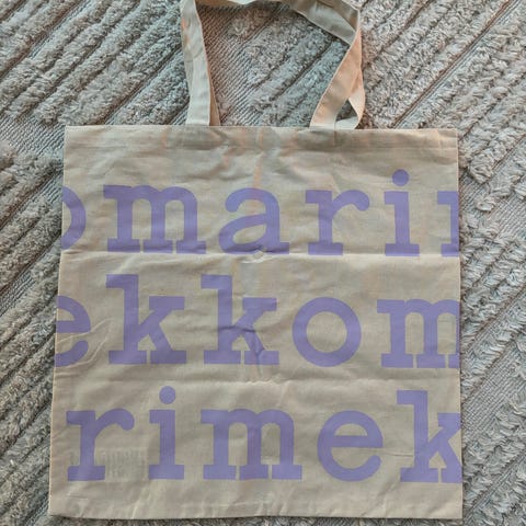 Marimekon ihana logokassi. Materiaali luonnonvalkoinen 100 % kierrätyspuuvilla. Molemmilla puolilla musta marimekko-teksti ja tummanvioletti Pioni-kuvio. Tekstin osalta puolet ovat erilaiset, ks. kuvat. Koko n. 46 cm x 45 cm, hihnojen pituus n. 54 cm. Täysin uusi ja käyttämätön. Hinta 30€. Nouto Espoo (esim. Kauklahti / Lippulaiva). Voin myös postittaa, jolloin postituskulut lisätään hintaan.