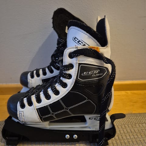CCM 142 luistimet, koko 37, erinomaisessa kunnossa. Pohjaan kirjoitettu aik. omistajan nimi peitetty tussilla.