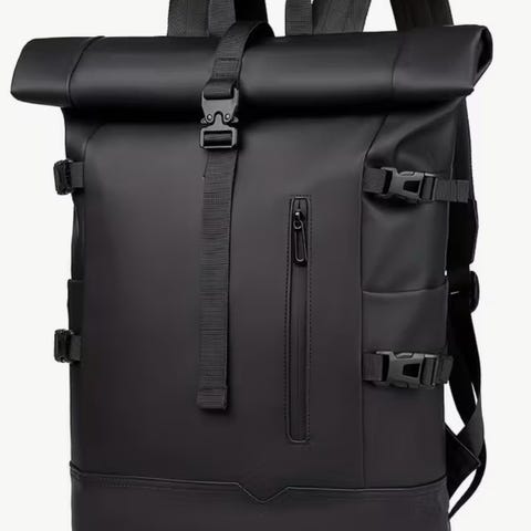 Tilava reppu työmatkalle tai toimistoon. Löytyy kaksi isoa taskua sekä edestä pari pienempää, joissa monenlaista lokeroa. Lisäksi sivutaskut juomapulloille sekä kiristys-, rinta- ja vyötäröremmit. Rintaremmin korkeutta voi säätää ja vyötäröremmin voi kiristää reppua vasten jos sitä ei halua käyttää. Reppu on käytetyssä, mutta siistissä kunnossa.