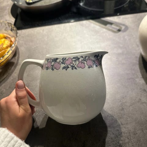 Arabia Moreeni Bepop kannu, jossa on monivärinen kuviointi. Kannun päälle ei ole kantta. Saa tarjota.