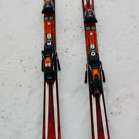 Viime keväänä kauden päätteeksi huolletut laskettelusukset seuraavalle laskijalle.
