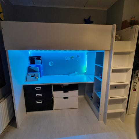 Myydään hyväkuntoinen IKEA SMÅSTAD -parvisänky (90×200), jossa työpöytä sekä kaapit liitutauluovilla. Ostettu uutena joulukuussa 2023 ja ollut hyvin vähäisellä käytöllä, siisti ja ehjä.