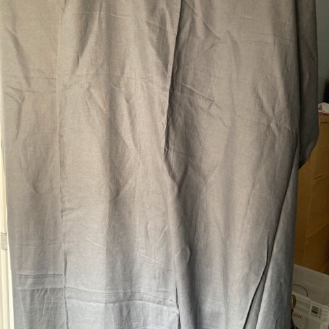Aivan kuin seassa olisi joku hopealanka mutta ei taida olla. Verhoon tehty lenkit joista voi pujottaa tankoon. Tai vaihtoehtoisesti nipsukiinnitys. Voin ommella verhonauhan missä koukkutaskut. Kulkeutuu postissa. S kokoisessa paketissa 7e
