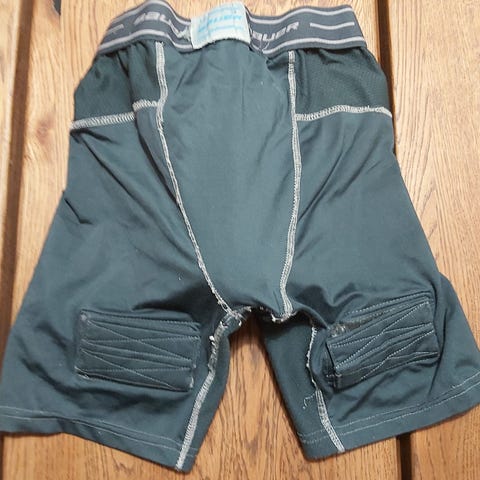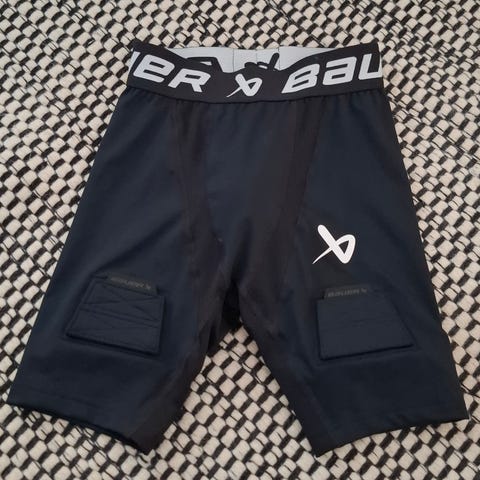 Lasten Bauer Compression Fit alasuojashortsit, koko Youth XS eli 114-127 cm. Tarrakiinnitys sukille.
