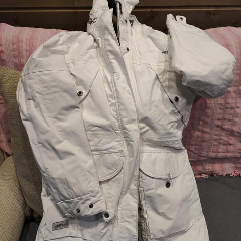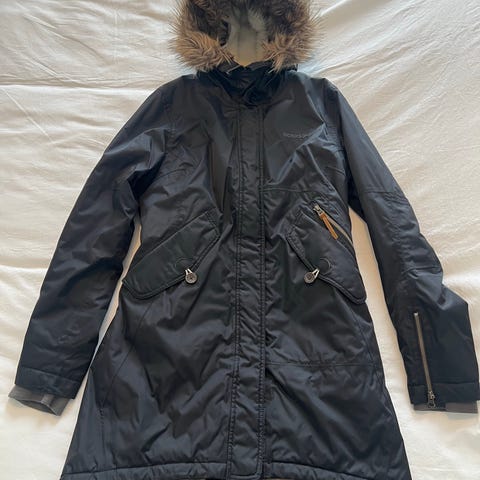 Erittäin siisti musta Didriksons talvitakki. Kiinteät harmaat hihansuut ja kiinteä huppu. Vedenpitävä.