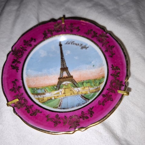 Limoges seinälautanen koristelautanen 21cm vihreä valk. kullattu(?) pariskunta