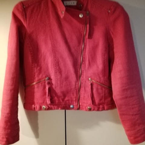 Rennon tyylikäs jakku. Pehmeää kangasta, miellyttävä päällä. Vetoketju ja kaksi taskua. Pinkkiin vivahtava punainen.