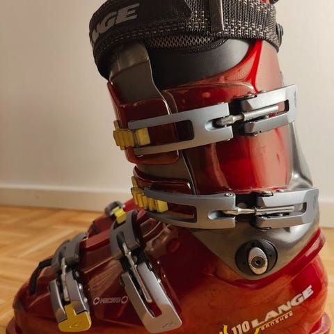 Langen naisten laskettelumonot, koko 37. Väri valkoinen ja harmaa. Monot on varustettu kolmella soljella ja pehmeällä sisävuorella.