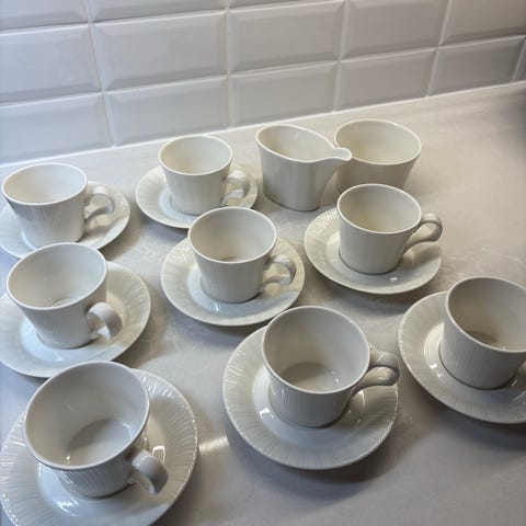 Kuppeja käytetty 2 kertaa, joitakin lautasia kerran, muut käyttämättömät.