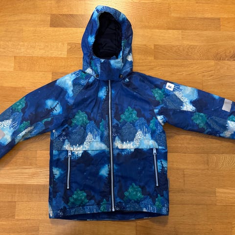 Reimatec talvitakki/toppatakki väri koralli, jossa pinkkejä ja vaaleita joutsenia.