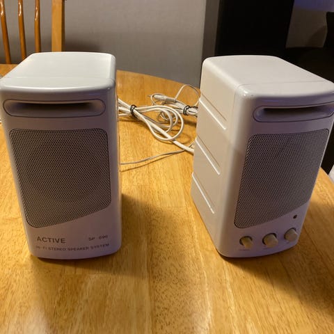 Vanhat kaiuttimet. Vanhat johdot, mutta kaiuttimet toimii moitteettomasti. Luultavasti jostain 80-90-luvulta.