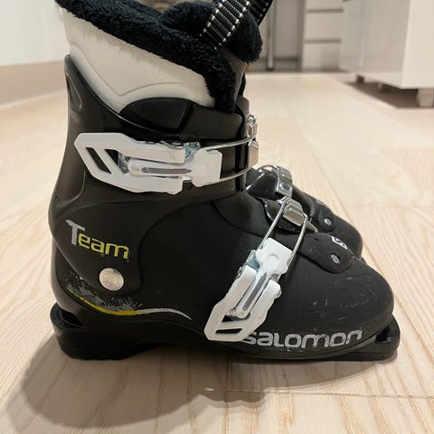 Salomon laskettelumonot, kunto kohtalaisen hyvä. Koko 19-19,5 (menee noin 30-32 jalkaan?) pohja 240 mm.