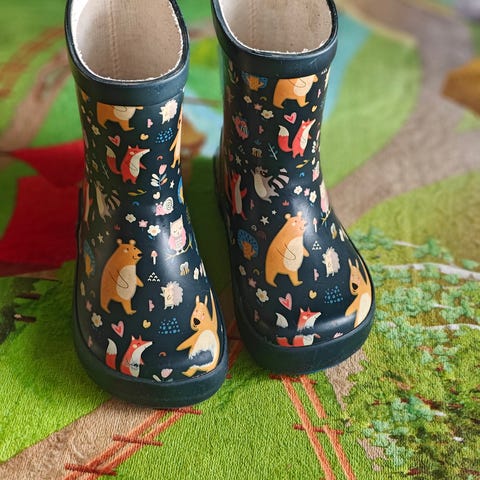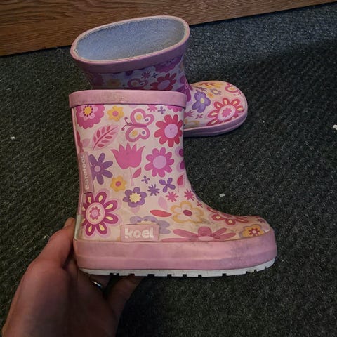 Meillä paljon käytetyt Aiglen paljasjalkakenkämäiset kumpparit koossa 23. Sisämitta itse mitattuna noin 14,5 cm. Kevyet, taipuisat, helppo pukea. Kuluneet jo.