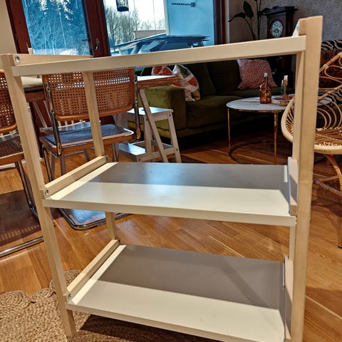 Takalevyyn on sahattu aukko (kts. Kuva), mutta muuten kunto ihan kohtuullisen hyvä. Puinen jalkasarja kuuluu kauppaan (ei ruuveja tallella).