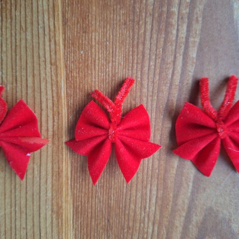 Rusetteja lahjapakkaukseen ym. Sini/puna rasiassa yht. 4 kpl+nauhat 2x3 m. Vaaleita 9 kpl ja kulta/beessi 12 kpl. Yhteishinta 5 euroa. Postituskulut selvitetään tarvittaessa ja lisätään hintaan.
