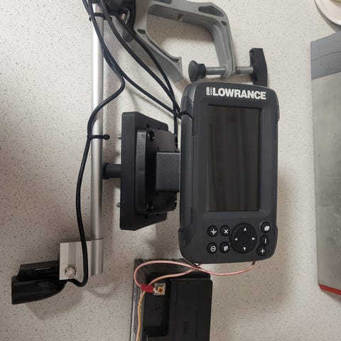 Lowrance hook4x kaikuluotain jäänyt niin vähälle käytölle, että joutas tarvitsevammalle. Tässähän on valmius pilkkianturillekkin. Mukaan saa veneen reunaan kiinnitettävän telineen. Johto muokattu ctek pistokkeelle käypäseksi.