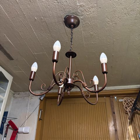 Kaunis mattaisen kultainen kattokruunu myynnissä. "sakarat" saa käännettyä kasaan jolloin kuljetus helpottuu :) mukaan saa tähän sopivia ledlamppuja.