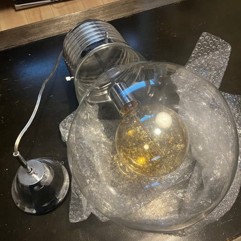 Lampun sisäosan paperi alakulmasta lähtenyt hieman repsottamaan ei kuitenkaan näy ulospäin kun varjostimen asettaa kattoon