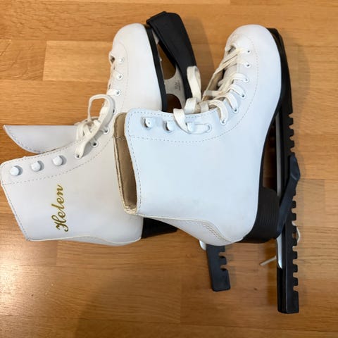 Myyntiin käytetyssä, hyvässä kunnossa olevat kaunoluistimet koossa 41. Sisämitta about 26cm. Muutama vuosi sitten teroitettu, näillä luisteltu pari krt/talvi. Aavistuksen verran ruostetta yhdessä kohtaa, päällisin puolin tarkasteltuna ehjät.