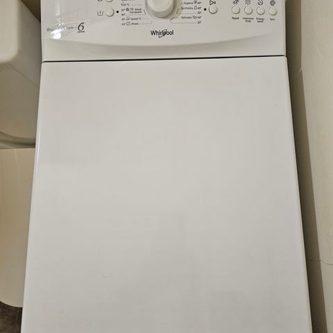 Whirlpool päältä täytettävä pesukone. Toimii erinomaisesti, myydään muuton tieltä.