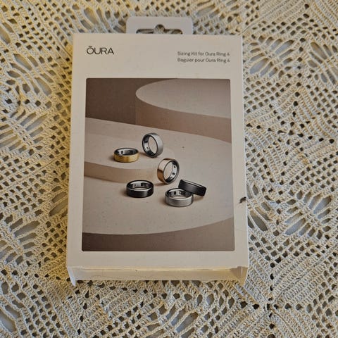 Oura Gen3 älysormuksen sovitussetti. Tuote toimitetaan alkuperäisessä pakkauksessa, mukana eri kokoiset renkaat sopivuuden varmistamiseksi.
