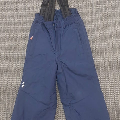 Myydän Reiman toppahousut koossa 98 cm. Ostettu uutena ja käytetty kahdella lapsella. Henkselit ja jalkalenksut ehjiä. Lahjeissa nepparit. Pepun ja polvien kohdalla vähän kulumaa (korostuu mustassa värissä kuvissa). Äsken kuvia ottaessa huomasin oik. polvessa pari pintanaarmua, joista lähikuva. Muuten housuissa kunto hyvä. Housut juuri pesty (hajusteettomalla pesuaineella).