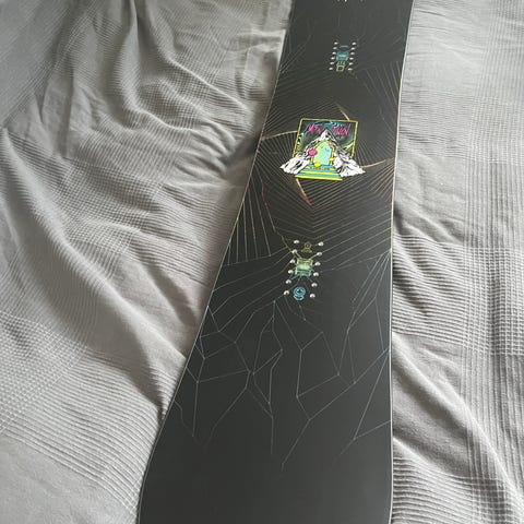 Itse ostanut tämän käytettynä ja parkissa ei ole omasta toimesta käyty vaan pelkästään laskussa. Kärjessä vähän alkanut pinta repsotamaan entisen omistajan kolauksen takia, mutta ei vaikuta käyttöön. Lisä kuvia saa pyytämällä.