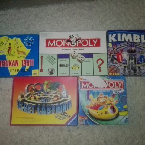 Englanninkieliset lasten Monopoly ja Scrabble + Kimble