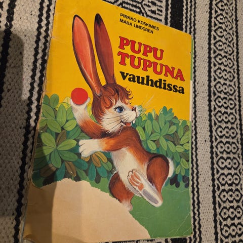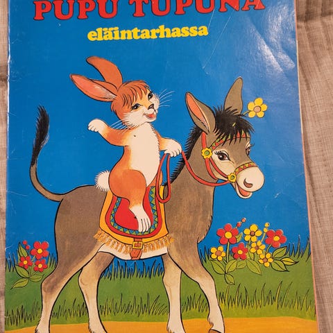 Vanha pehmeäkantinen Pupu Tupuna satukirja 1976. Sisältä oikein hyvässä kunnossa, ei teippiä, sotkuja tai käytönjälkeä. Kansissa kulumaa, ja selkämyksessä alaosassa irti, katso kuva.