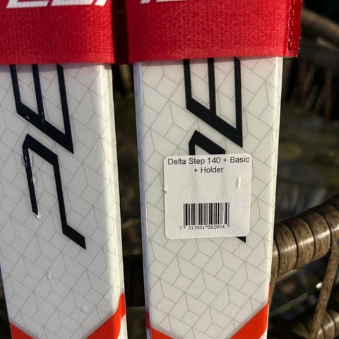 Lastenhiihtosetti sisältää sukset ja monot. Sukset ovat mustat, ja monot ovat mustat keltaisilla yksityiskohdilla. Monojen koko 37, sauvat 120 cm ja sukset 141 cm. Toisesta siteestä lohjennut pieni muovi osa, mutta se ei vaikuta käyttöön.