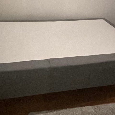Siisti runkosänky harmaalla päällikankaalla ja tummanruskeilla jaloilla. Käytetty noin 6 vuotta mutta edelleen käyttökelpoinen. Pääosin ehjä mutta kuvissa näkyy pohjan kankaan repeämiä. Päällä käytetty aina petauspatjaa ja muutenkin siisti eläimetön talous.