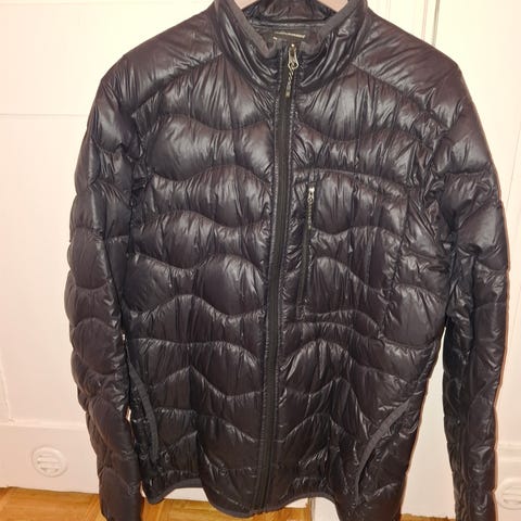Takki on valmistettu untuvasta, joka tarjoaa lämmittävän ja kevyen suojan ulkoiluun.