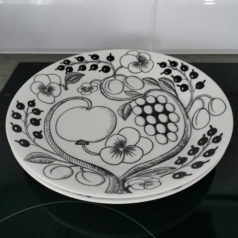 Myydään uudet ja käyttämättömät Arabian paratiisisarjan mustavalkoiset kahvikupit aluslautasineen.