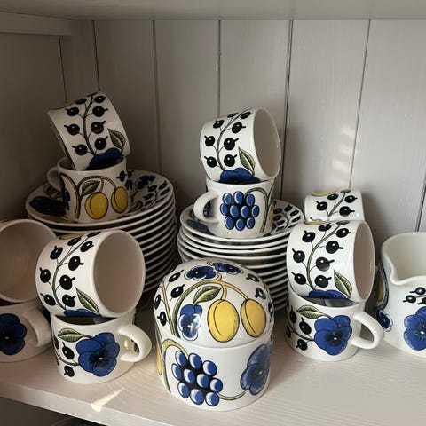Arabia Paratiisi kahvikuppi ja aluslautanen, värikäs